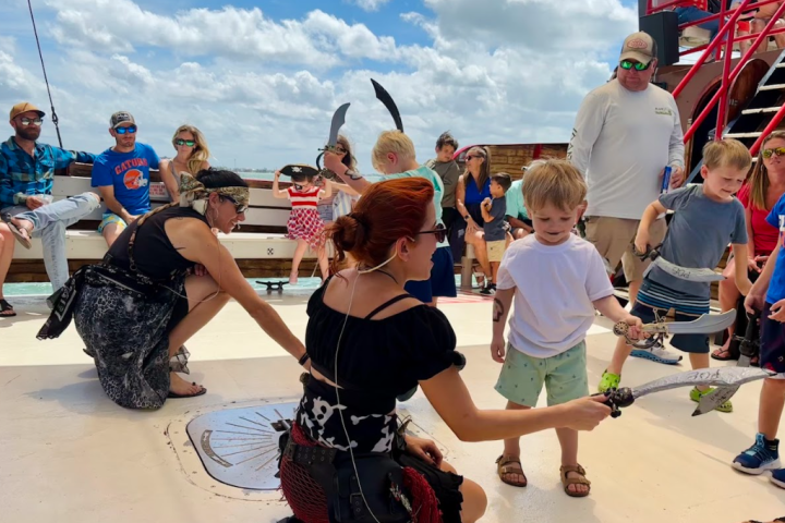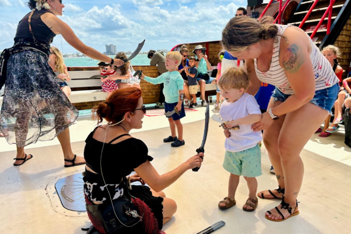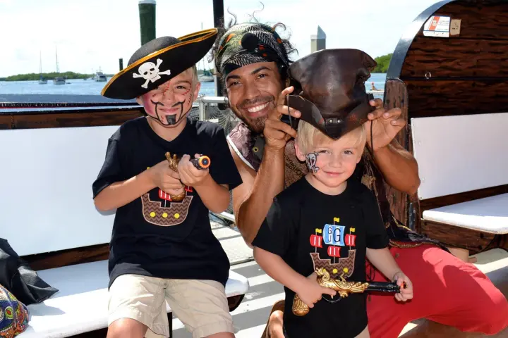 Join our lively pirate crew for swashbuckling fun — treasure chests, dancing, limbo, cannon fire, pirate games, and plenty of nautical nonsense as we sail the sparkling waters of the Gulf of Mexico. You’ll even get to share in the “booty” as we celebrate our victory on the way back to port!