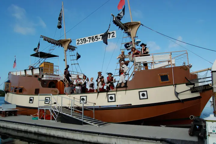 Climb aboard the Pieces of Eight, a 65-foot replica Spanish galleon, for the most exciting sunset cruise on Fort Myers Beach! Our interactive comedy adventure is packed with swashbuckling fun — treasure chests, face painting, pirate games, dancing, cannon fire, limbo contests, and plenty of nautical nonsense.